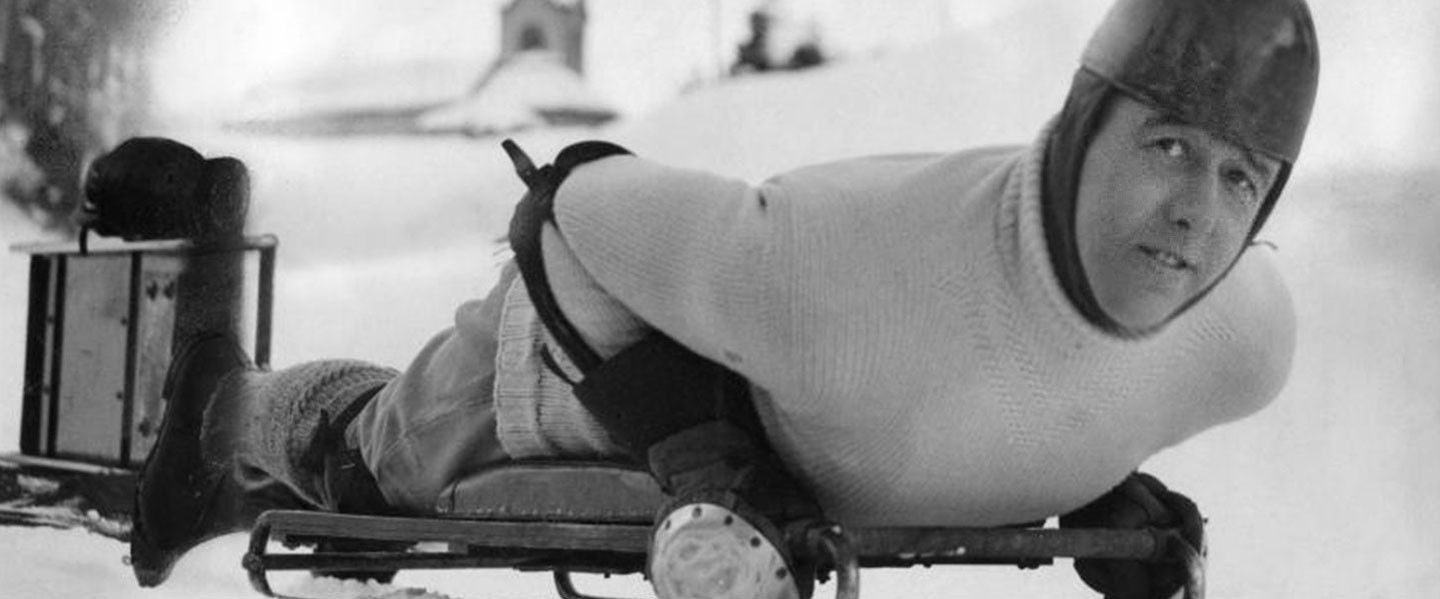 The famous brand of ski bindings organizes in winter 1954 a demonstration of very incredible ski jumps with the star skiers of the time. The Norwegian ski jumper Birger Ruud performs several somersaults on the 30-meter springboard, which he is the only one in the world to know how to do. And as a bonus, a blunderer of the most perilous falls and the presentation of "ski of year 2000"! The Kandahar binding was developed in the 1930s by the Swiss watch manufacturer Reuge. By retaining the heel of the skier, it allows him to achieve better performance. It is one of the main fasteners used until the early 1950s.